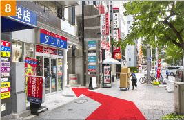左手1階にオーダースーツ専門店のダンカンさんが入っているビルの8階です。名鉄名古屋駅中央改札口(出口専用)からの道順