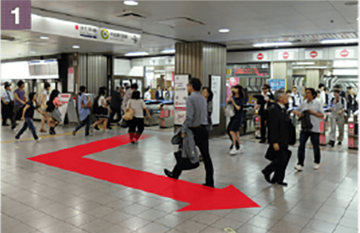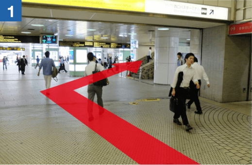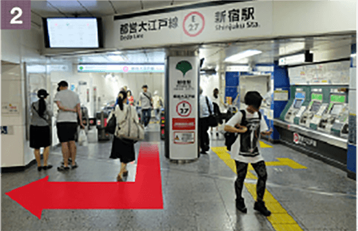 大江戸線にてお越しの方は改札を出て右に向かいます。