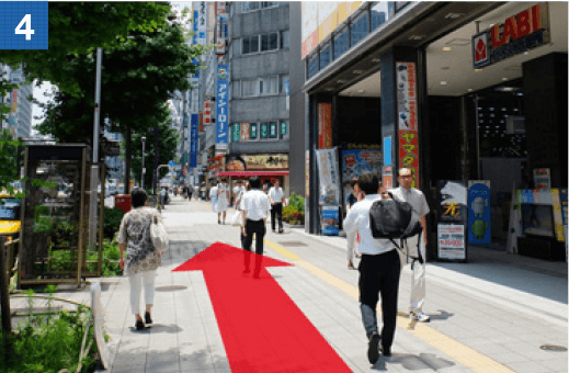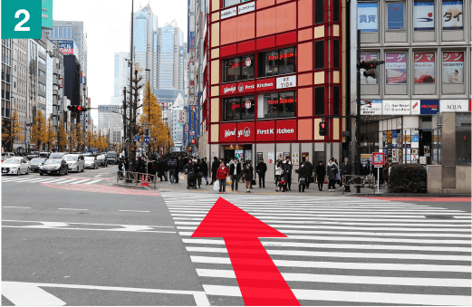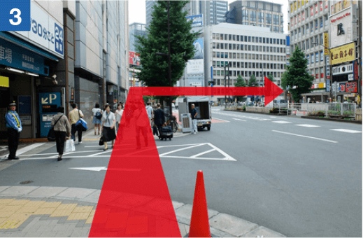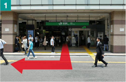 駅(ルミネ1)を右手に坂を下るようにして進んでいただき、横断歩道を渡ります。