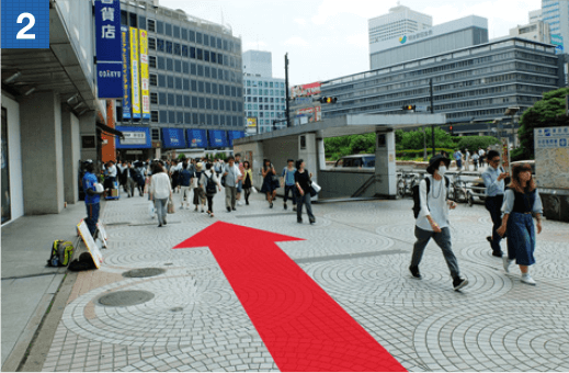 地上に出たら出口と逆方向(京王百貨店方面)へ進みます。