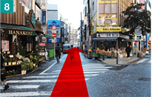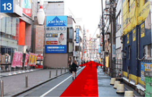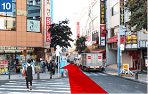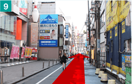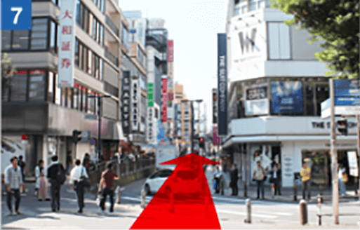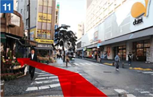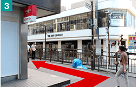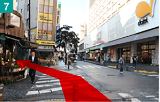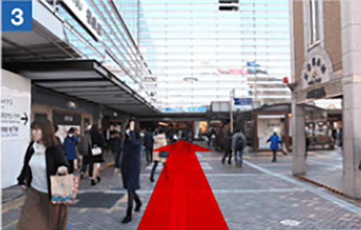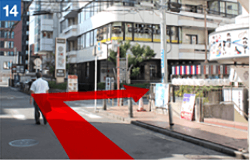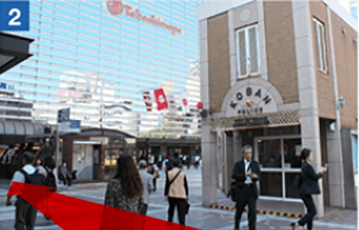 地上に出たら出口と逆方向(京王百貨店方面)へ進みます。