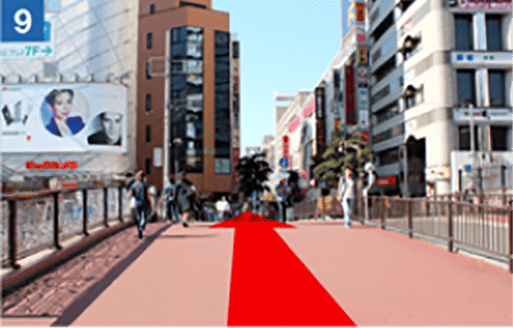 左にビックカメラ、右にビブレが見えますのでそのまま直進して橋を渡ります。